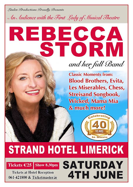 Celebrate 40 years in showbusiness with Rebecca on June 4th at Strand Hotel Limerick .. A night not to be missed!